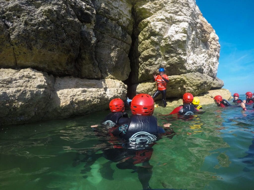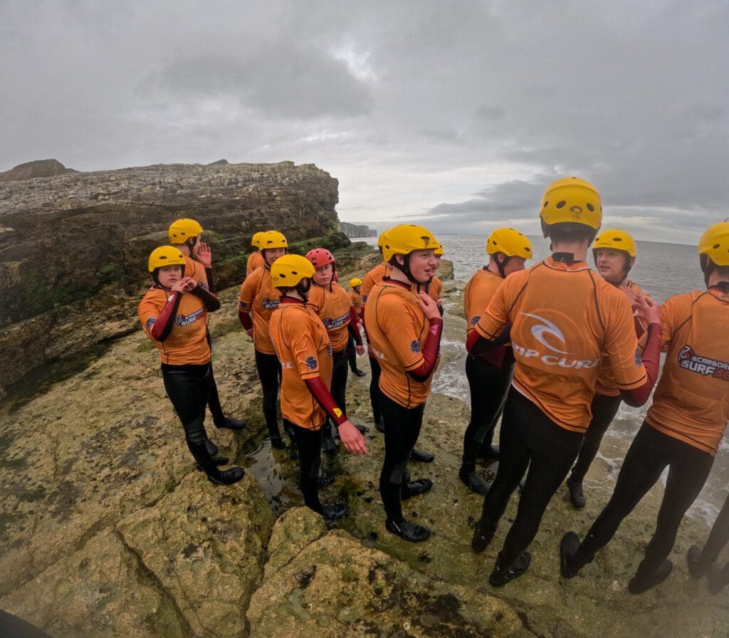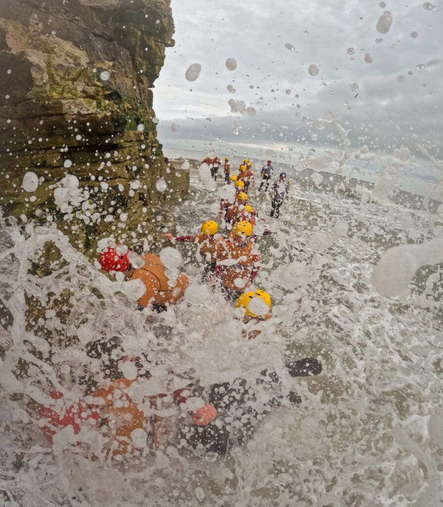 Coasteering entails wearing a specialist full body wetsuit, recreational buoyancy aid, whitewater helmet and suitable footwear. We provide all the required equipment, all you’ll need to bring is swimwear a towel and a sense of adventure!