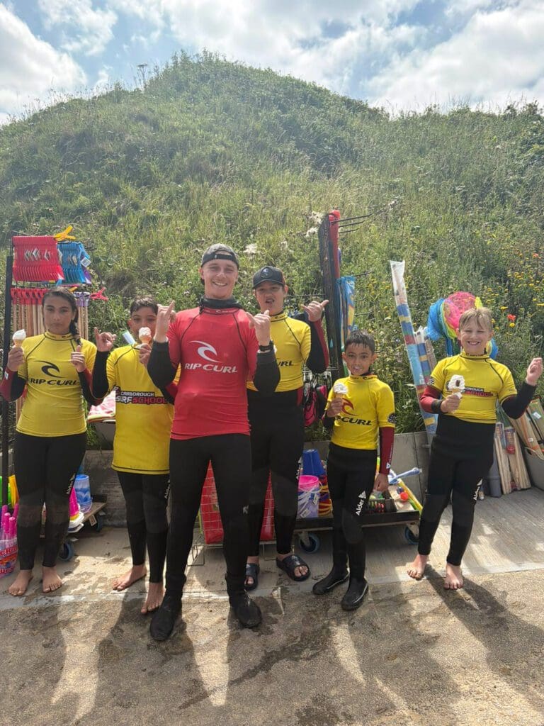 We now offer a junior surf scheme ‘Grom Squad’ in association with ‘Surfing England’ which is a fantastic scheme through which the juniors receive a logbook and can complete levels 1-5 receiving certificates and badges for each level. Which can be requested during the course.